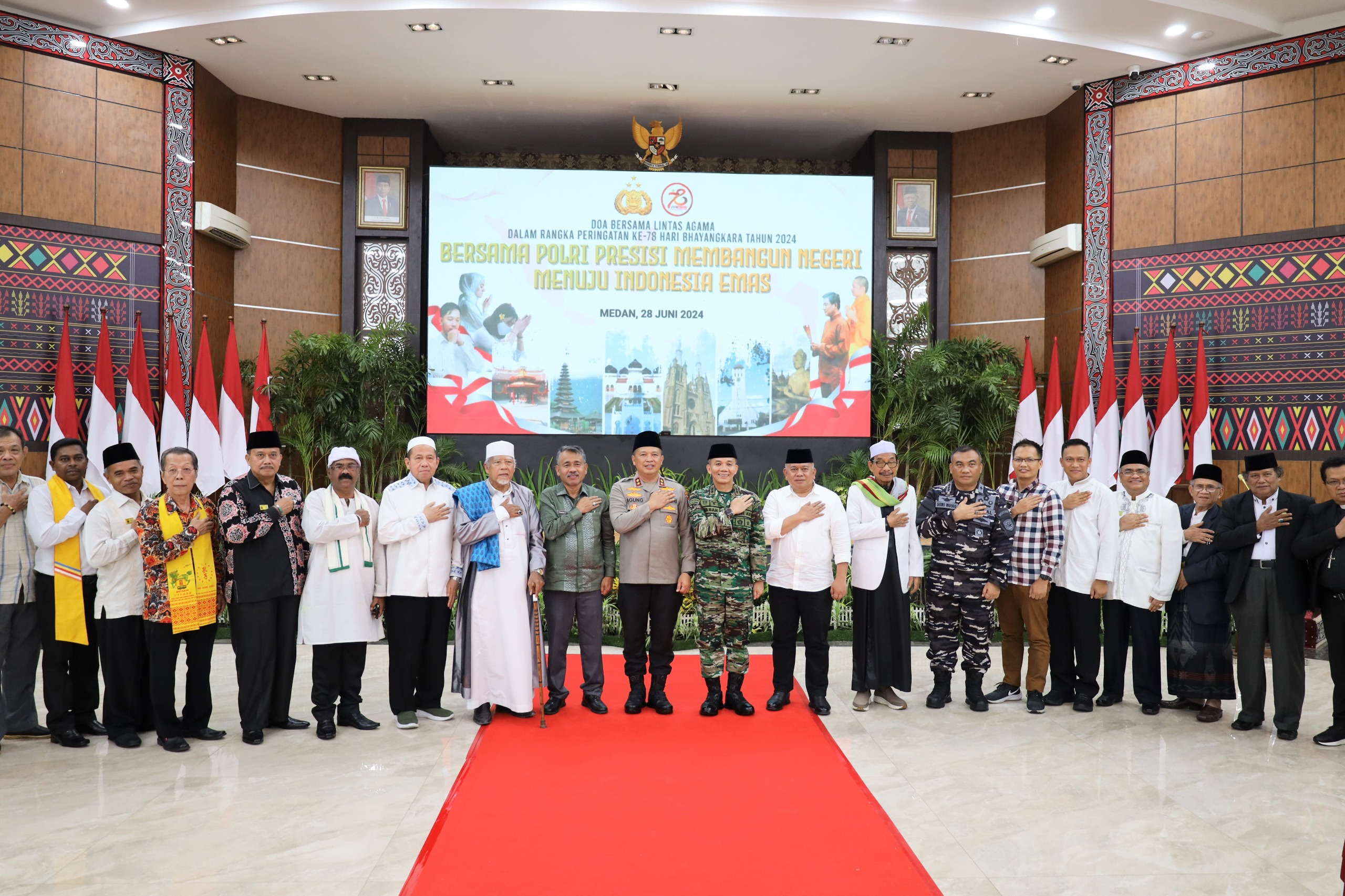 BRN, TNI AL, Belawan,- Komandan Pangkalan Utama TNI Angkatan Laut I (Danlantamal) I Brigjen TNI (Mar) Jasiman Purba, S.E., CHRMP., diwakili Wadan Lantamal I Kolonel Laut (P) Siswo Widodo, S.T., menghadiri acara Doa Bersama Lintas Agama dalam rangka memperingati Hari Bhayangkara Ke-78 melalui Vicon, bertempat di Aula Tribrata, Mapolda Sumut, Jalan Sisingamangaraja, Sumatera Utara, Jumat (28/6/2024).