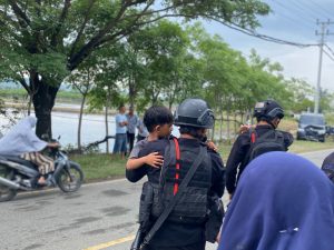 Aceh Besar, Kamis (10/10/2025) – Personel Kompi 1 Batalyon A Pelopor Satuan Brimob...
