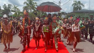 Timika – Dandim 1710/Mimika Letkol Inf M. Slamet Wijaya, S.Sos,.M.Han,.M.A. sambut kedatangan Pangdam...