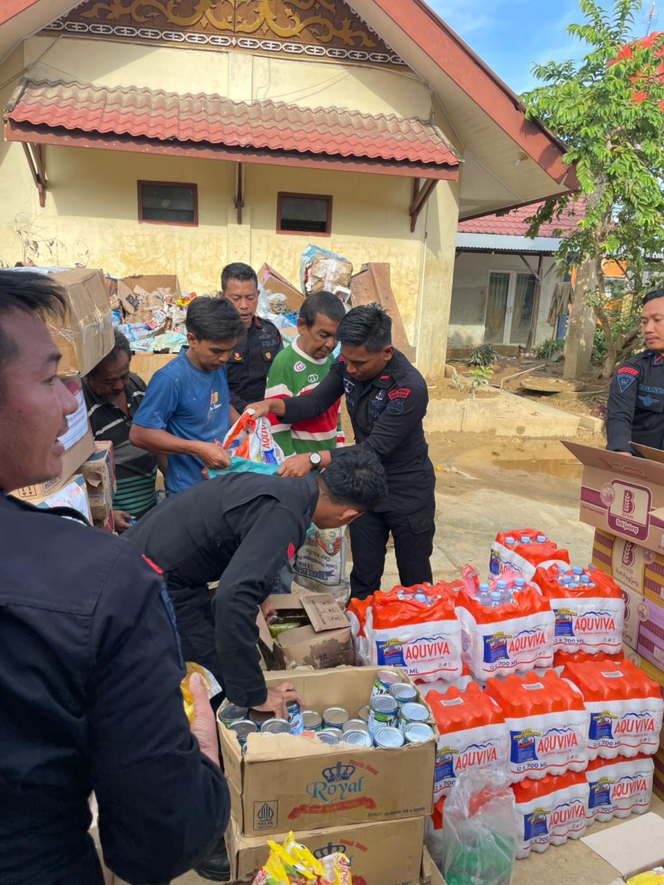Sejak pagi, para personel yang bermarkas sementara di Pos SAR PasBrimob I Terminal Aceh Tamiang telah melakukan berbagai kegiatan kemanusiaan mulai dari pembagian sembako hingga suplai air bersih.