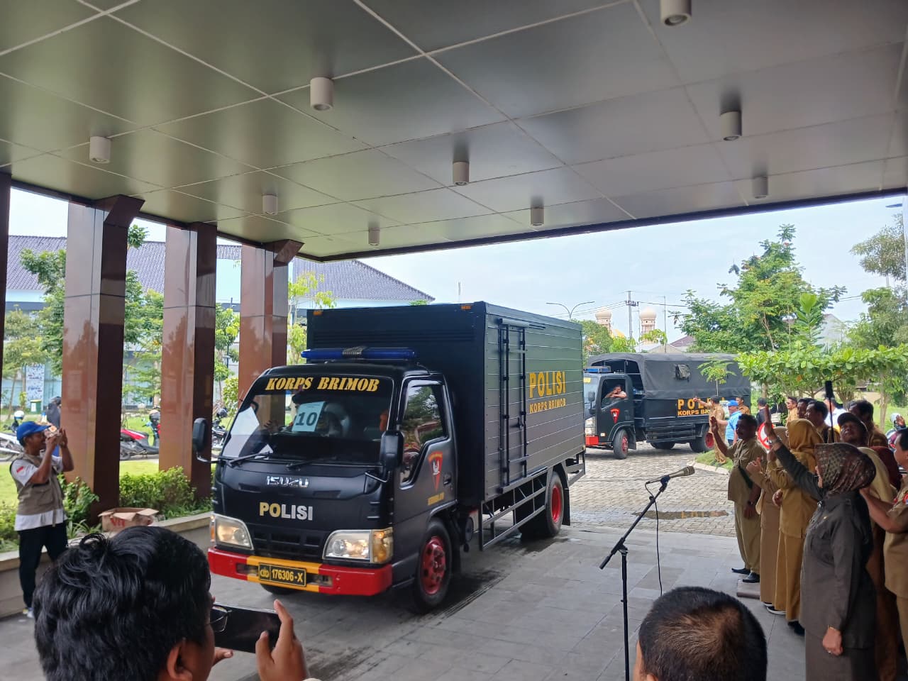 Bantuan tersebut diangkut oleh 8 armada truck dari Kodim 0813, Brimob Kompi 3 Batalyon C Pelopor Satbrimob Polda Jatim, BPBD Kab. Bojonegoro dan Satpol PP, untuk selanjutnya diserahterimakan di BPBD Provinsi Jawa Timur.
