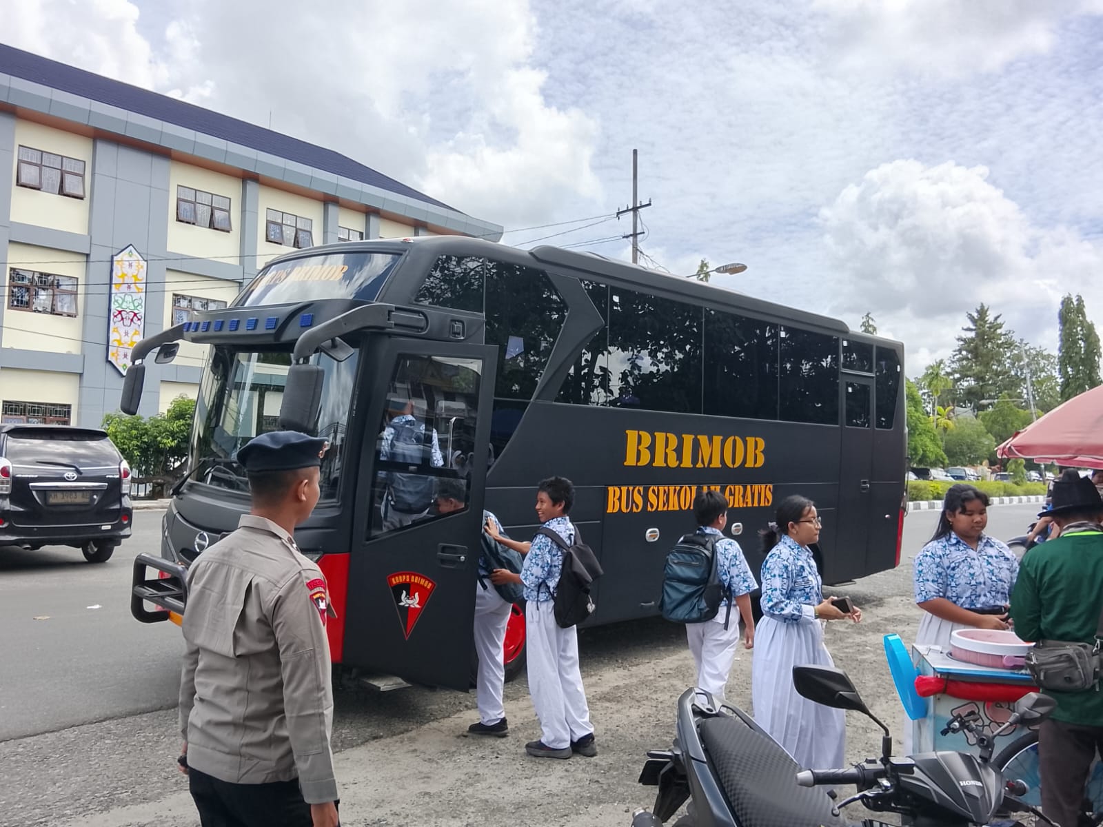Para personel Brimob juga memastikan seluruh proses penjemputan berjalan tertib serta memberikan pendampingan penuh selama perjalanan. Senyum para siswa saat menaiki bus menjadi gambaran nyata bahwa program ini memberikan dampak positif, tidak hanya sebagai sarana transportasi, tetapi juga bentuk kepedulian nyata dari Brimob kepada generasi muda.