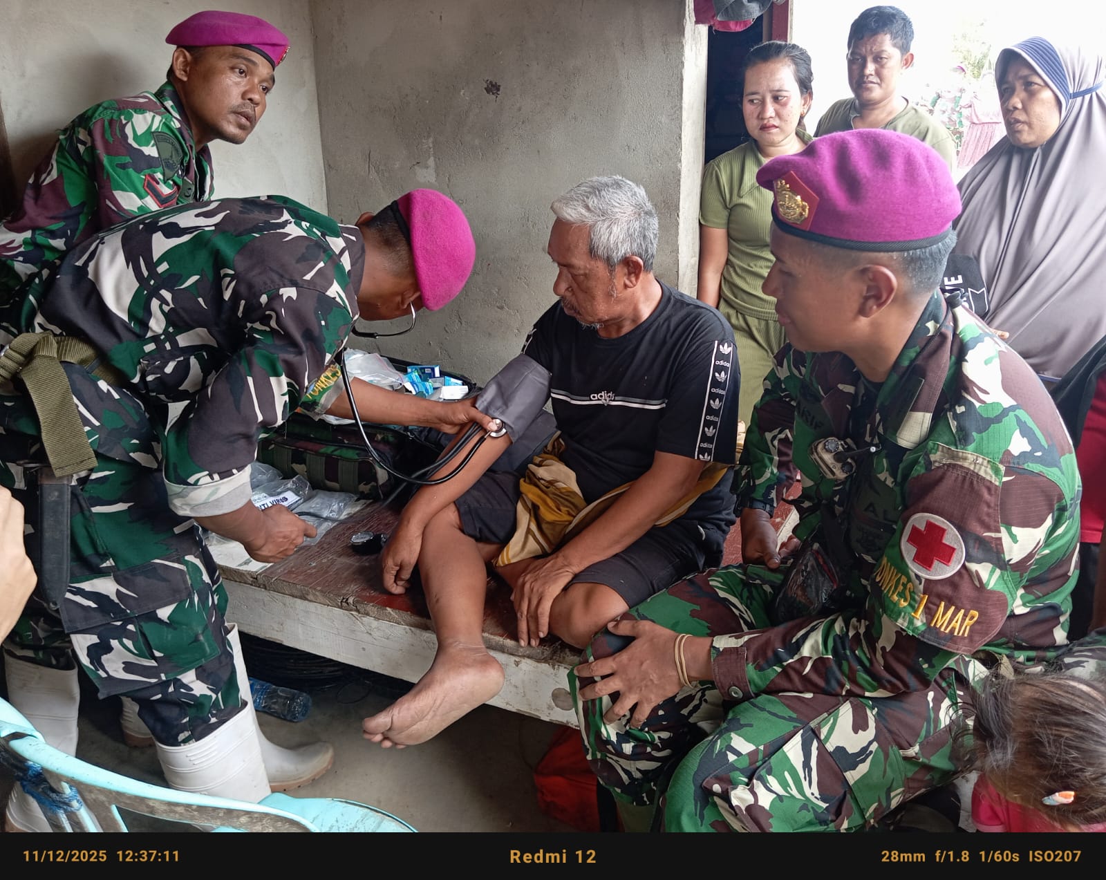 Di sela genangan air dan lumpur yang belum surut, para prajurit menyusuri lorong-lorong kecil untuk memastikan tidak ada warga yang terlewatkan. Para dokter dan tenaga kesehatan Korps Marinir bekerja sigap memeriksa anak-anak, membantu lansia, hingga melakukan tindakan medis ringan yang dibutuhkan di lapangan secara langsung. Kehadiran Marinir disambut haru oleh warga Aceh Tamiang yang sudah menunggu.