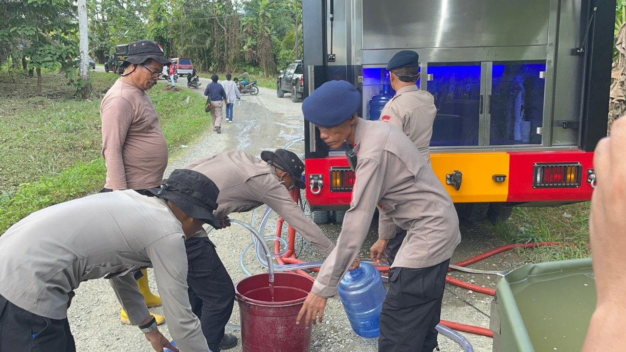 Dalam pelaksanaannya, personel Brimob melakukan pengolahan air dari sumber yang tersedia di lokasi menggunakan Mobil Water Treatment, kemudian menyalurkan air bersih yang telah melalui proses penyaringan dan sterilisasi sehingga aman dan layak untuk dikonsumsi.
