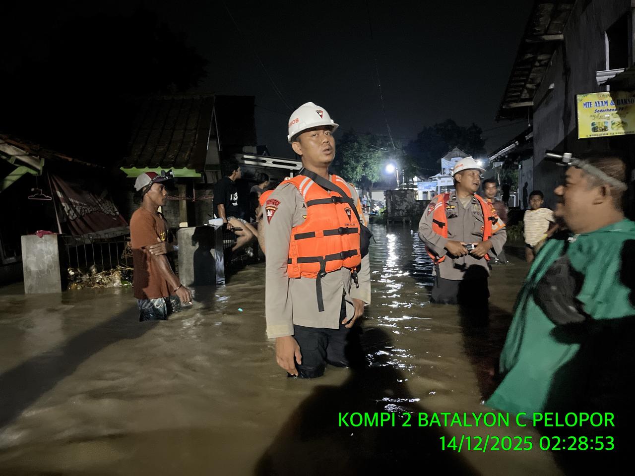 Menanggapi kondisi tersebut, Tim SAR Kompi 2 Batalyon C Pelopor Satbrimob Polda Jawa Barat dengan sigap melaksanakan kegiatan SAR kemanusiaan. Personel Brimob turun langsung ke lokasi untuk membantu warga membersihkan genangan air banjir yang masuk ke rumah-rumah, sekaligus memastikan lingkungan kembali aman dan layak huni.