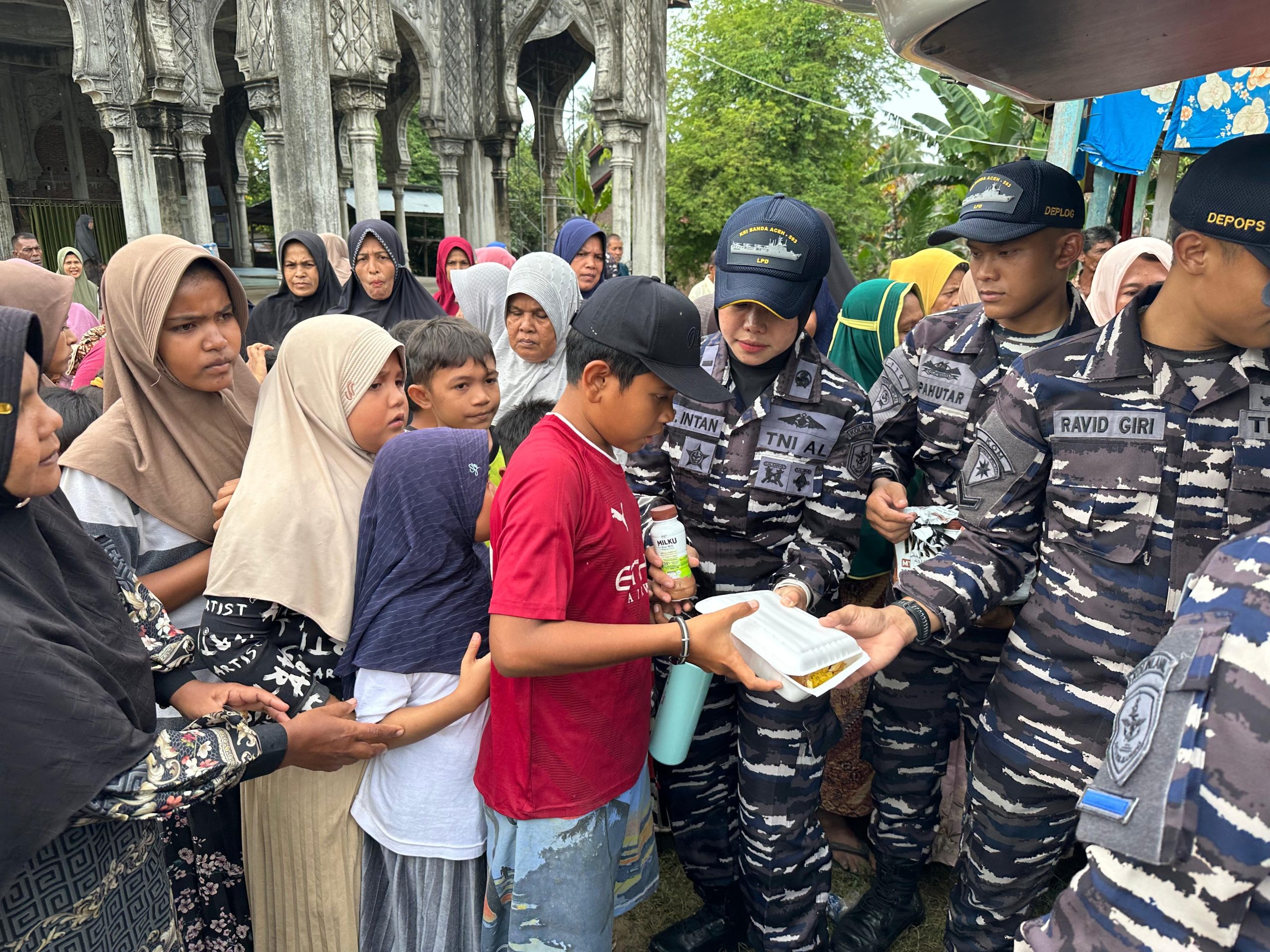 Melalui penyiapan dan pembagian makan siang gratis, Prajurit KRI Banda Aceh-593 berbagi kebahagiaan di tengah kondisi darurat yang dialami warga terdampak bencana. Kegiatan ini merupakan wujud kepedulian serta komitmen TNI AL untuk senantiasa hadir bersama rakyat, khususnya dalam situasi sulit.