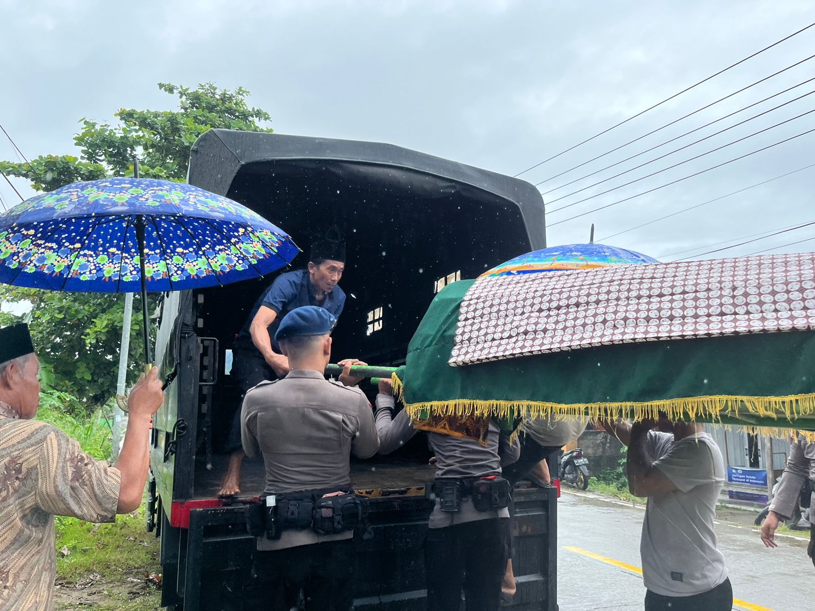 Lanjut Dansat Brimob Banten menjelaskan bahwa dalam sambang duka ini anggotanya turut hadir melayat kerumah duka dan membantu proses pemakaman, antara lain menyolatkan jenazah serta melaksanakan pengantaran jenazah ke tempat pemakaman umum Kiara Payung.