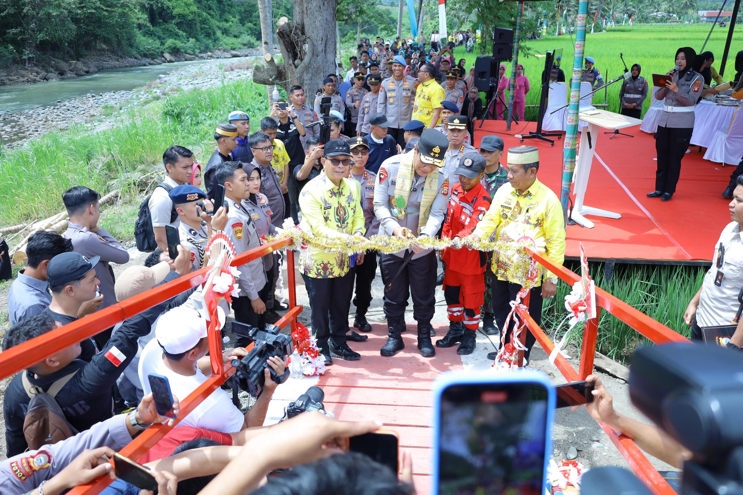 “Pembangunan jembatan ini merupakan instruksi Bapak Presiden yang memerintahkan kami untuk hadir membantu masyarakat. Kami menargetkan pembangunan selesai dalam dua minggu, dan alhamdulillah hari ini jembatan ini dapat kita resmikan,” ujar Kapolda