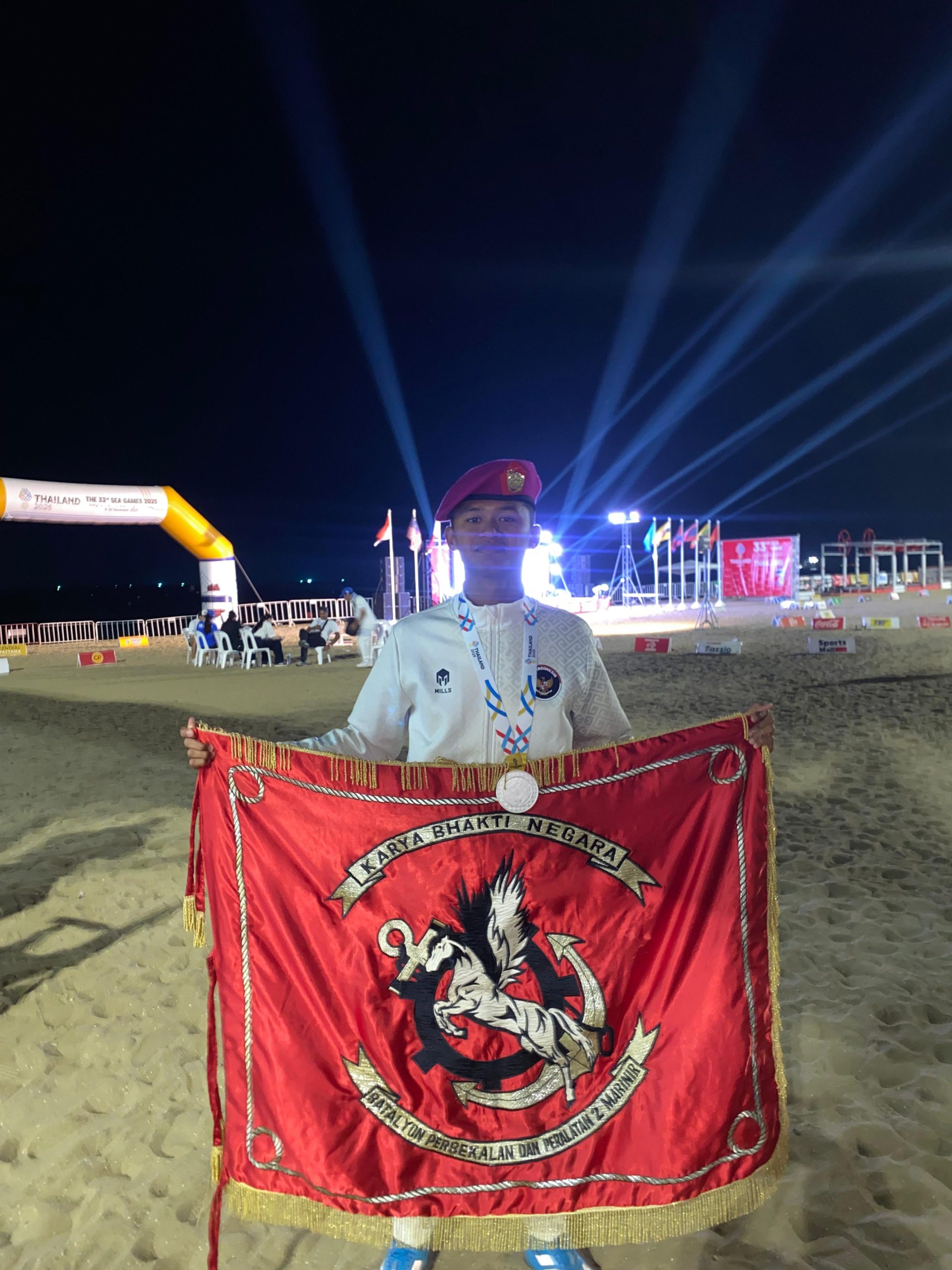 TNI Angkatan Laut (Jakarta). Prajurit petarung Korps Marinir TNI Angkatan Laut kembali menorehkan prestasinya pada ajang SEA Games XXXIII Tahun 2025 yang digelar di Bangkok, Thailand. Kali ini, Sertu Marinir Ifsan, prajurit Pasmar 2, berhasil mempersembahkan medali perak bagi Kontingen Indonesia pada cabang olahraga Modern Pentathlon, nomor Men’s Obstacle Laser Run Individual, Jumat (19/12/2025).