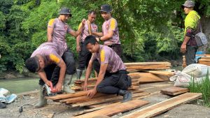 Donggala — Personel Brimob Polda Sulteng kembali melanjutkan progres pembangunan jembatan di Dusun...