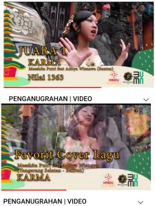 Tak tanggung-tanggung Messhita Putri feat Aditya Wisnawa dari Tangerang Selatan Banten menyabet 2 juara sekaligus yaitu juara 1 pilihan Juri dan juara favorit pilihan pemirsa *”cover lagu rohani Hindu Nusantara, cover KARMA.*