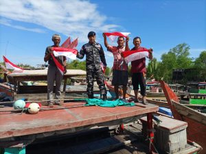 Sambut HUT RI Ke-78, Pos TNI AL Jajaran Lanal Dumai Laksanakan Gerakan Pembagian Bendera Merah Putih
