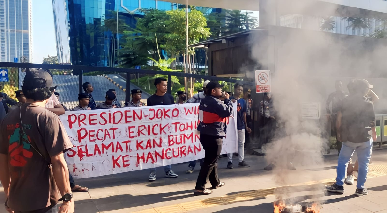 Rizky Marbun Kordinator Aksi kepada awak media mengatakan, Hampir 5 tahun, BUMN dikelola Erick Thohir. Banyak masalah, banyak hutang, dan banyak tidak transparan. Erick Thohir harus malu dan mundur, ini mengelola kepercayaan rakyat dan presiden, bukan mengelola sepak bola” ujar rizki selaku koordinator aksi.