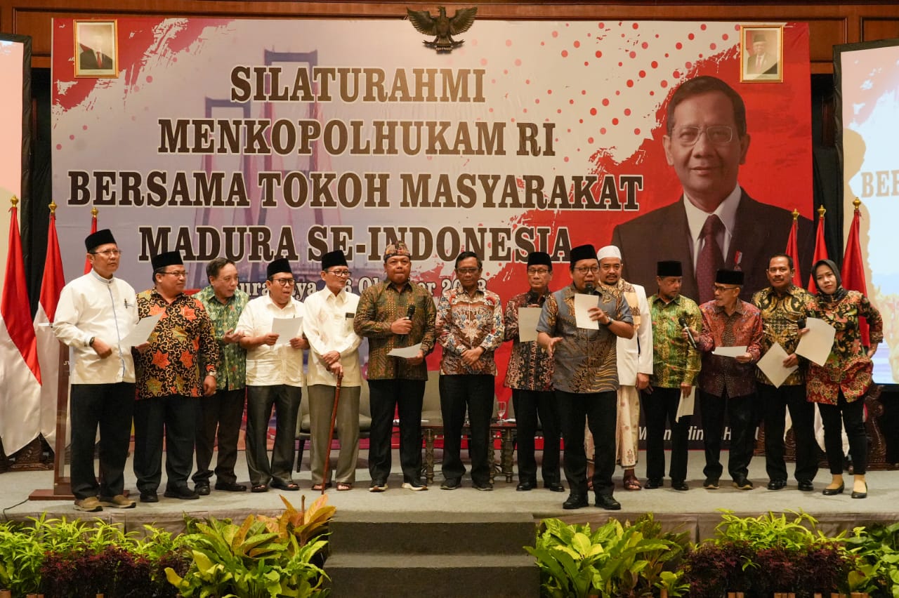 BRN | Sejumlah tokoh Madura lintas profesi dari berbagai wilayah di Indonesia mendeklarasikan diri siap menjaga dan mensukseskan Pemilihan Umum yang damai dan demokratis, yang akan berlangsung pada tanggal 14 Februari 2024 mendatang. Deklarasi itu disaksikan dan dilakukan bersama dengan Menko Polhukam Mahfud MD.