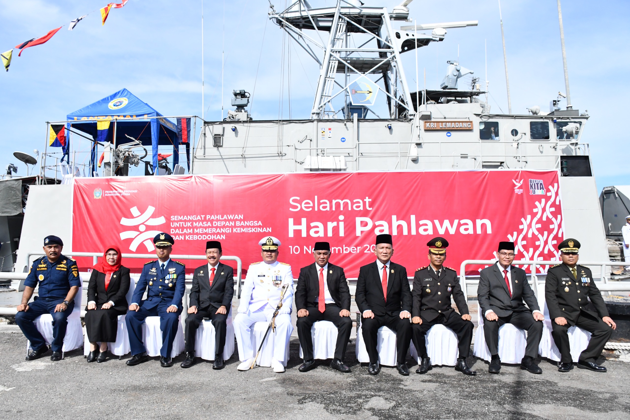 BRN | TNI AL, Belawan,- Komandan Pangkalan Utama TNI Angkatan Laut (Danlantamal) I Laksamana Pertama TNI Johanes Djanarko Wibowo memimpin Upacara Tabur Bunga dalam rangka memperingati Ke-78 Hari Pahlawan Tahun 2023 dengan tema “Semangat Pahlawan Untuk Masa Depan Bangsa dalam Memerangi Kemiskinan dan Kebodohan’’ bersama Forkopimda Provinsi Sumatera Utara, bertempat diatas Kapal Perang KRI Lemadang-632 dengan pengarungan karangan bunga di Perairan Belawan, Jumat (10/11/2023).