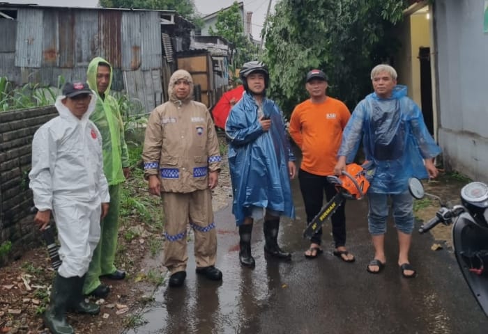 Serda Junaidi segera berkoordinasi dengan binamas dan Ketua RW/RT setempat untuk membantu membersihkan pohon-pohon yang tumbang tersebut.