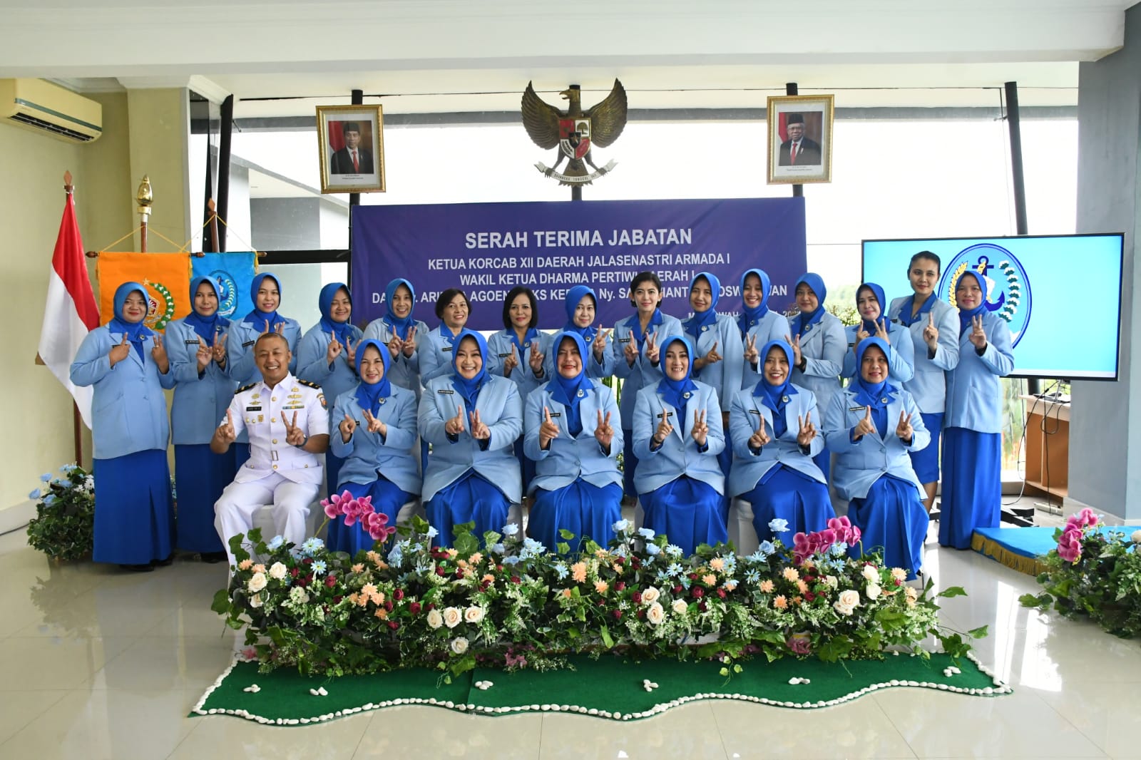 BRN, Mempawah, TNI AL – Lantamal XII- Ketua Daerah Jalasenastri Armada I (KDJA I) Ny. Yanti Yoos Suryono Hadi memimpin serah terima jabatan (Sertijab) Ketua Korcab XII DJA I dari Ny. Arietta Agoeng MKS kepada Ny. Sari Avianto di Gedung Yos Sudarso Mako Lantamal XII. JL.Wajok Hilir KM 17. Mempawah Kalimantan Barat. Selasa(23/4/2024).