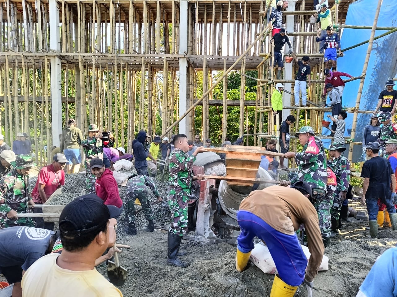 Dipimpin Danramil 1412-05/Pakue, Kapten Inf Sudarto, kegiatan ini menjadi bukti nyata kepedulian TNI dalam mendukung pembangunan fasilitas ibadah serta mempererat kemanunggalan dengan rakyat.