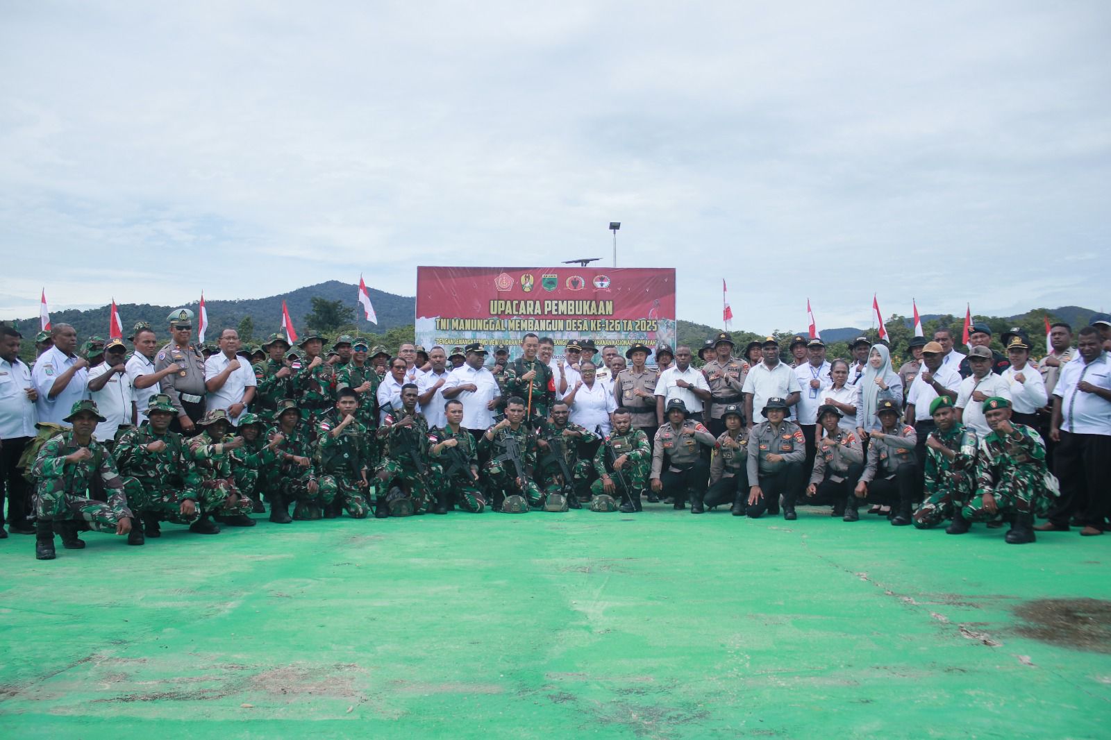 Turut hadir pula tokoh masyarakat, tokoh agama, serta perwakilan warga dari Kampung Babak, Distrik Bamusbama, yang menjadi lokasi sasaran TMMD.