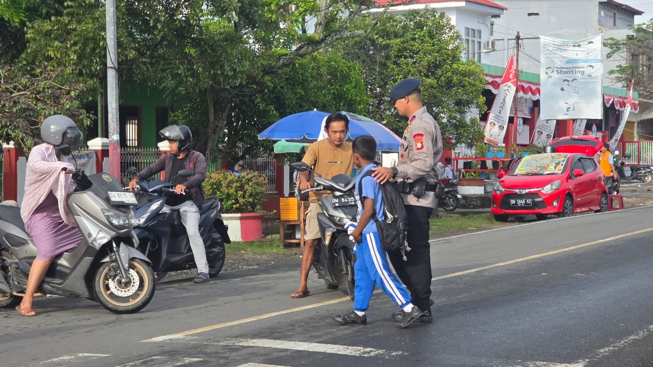 Dengan penuh kepedulian dan tanggung jawab, Bripda Rahman berdiri di pinggir jalan, memastikan setiap anak yang hendak menuju ke sekolah bisa menyeberang dengan aman. Aksi ini dilakukan secara spontan, berangkat dari kepekaan terhadap situasi lalu lintas yang cukup padat di sekitar sekolah tersebut.