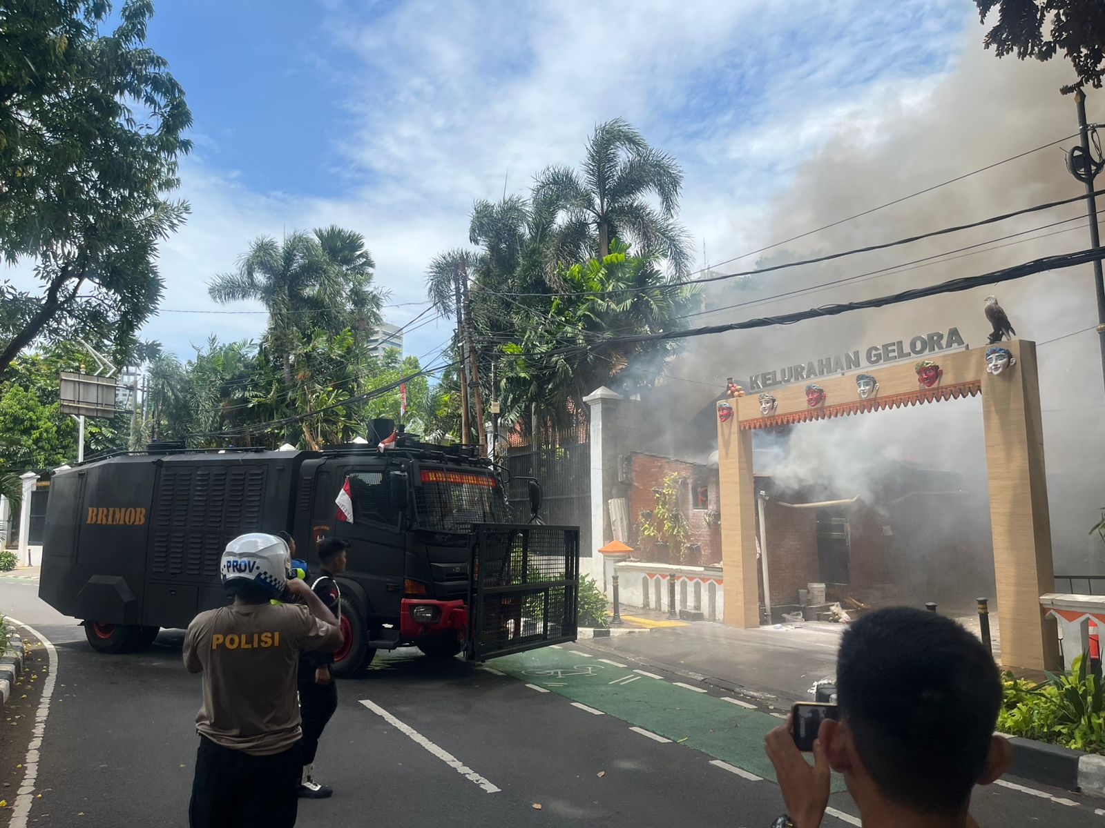 Aksi sigap kembali ditunjukkan oleh Personel Resimen III Pasukan Pelopor saat kebakaran melanda sebuah Restoran Bakso di Jln. Gerbang Pemuda nomer 1, Gelora kecamatan Tanah Abang, Jakarta Pusat. Rabu (22/10/25) Siang.