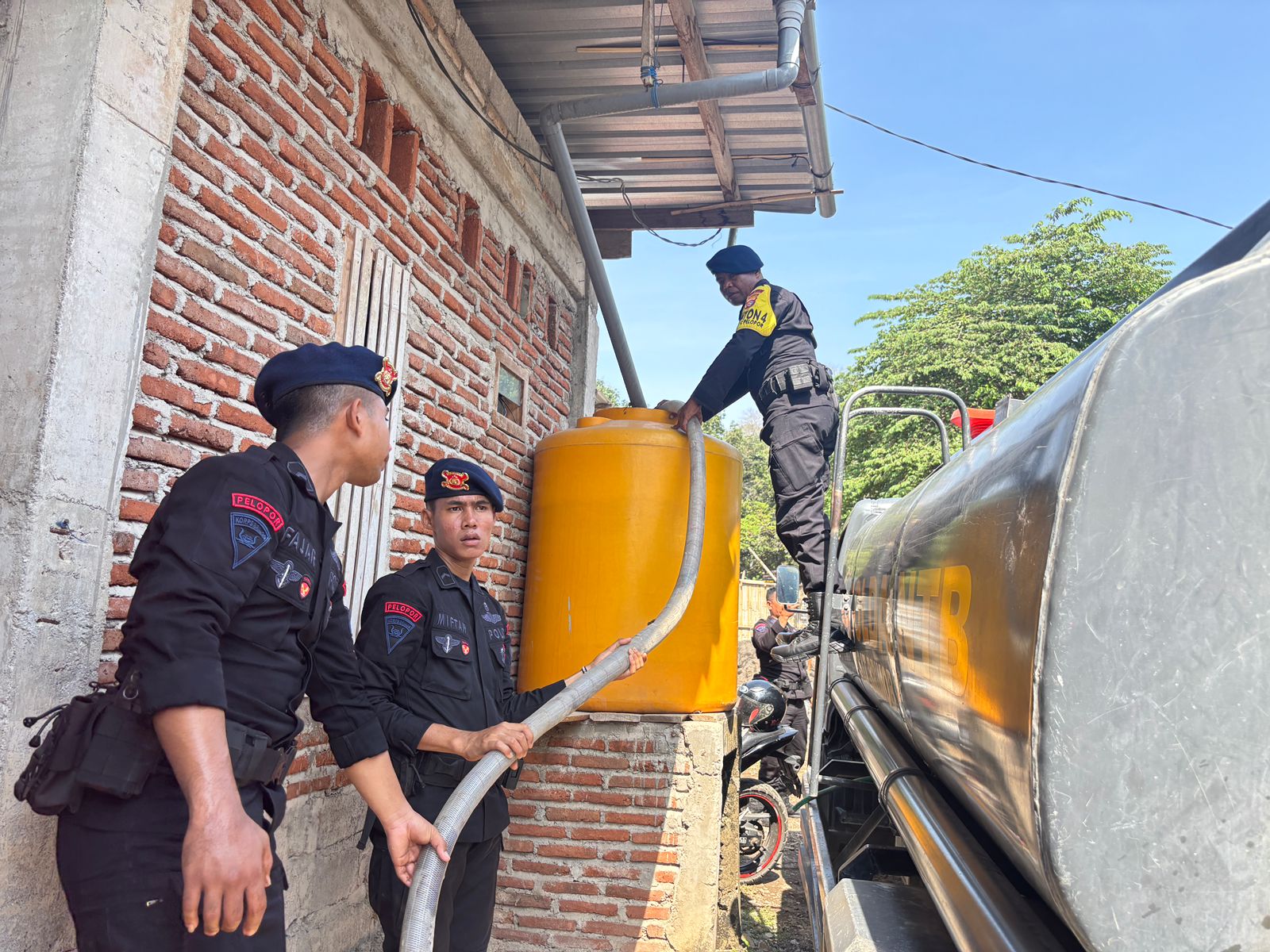 Dengan menggunakan kendaraan taktis pembawa tangki air, personel Brimob mendistribusikan air ke rumah warga. Antusiasme dan rasa syukur masyarakat terlihat saat mereka menerima bantuan tersebut.