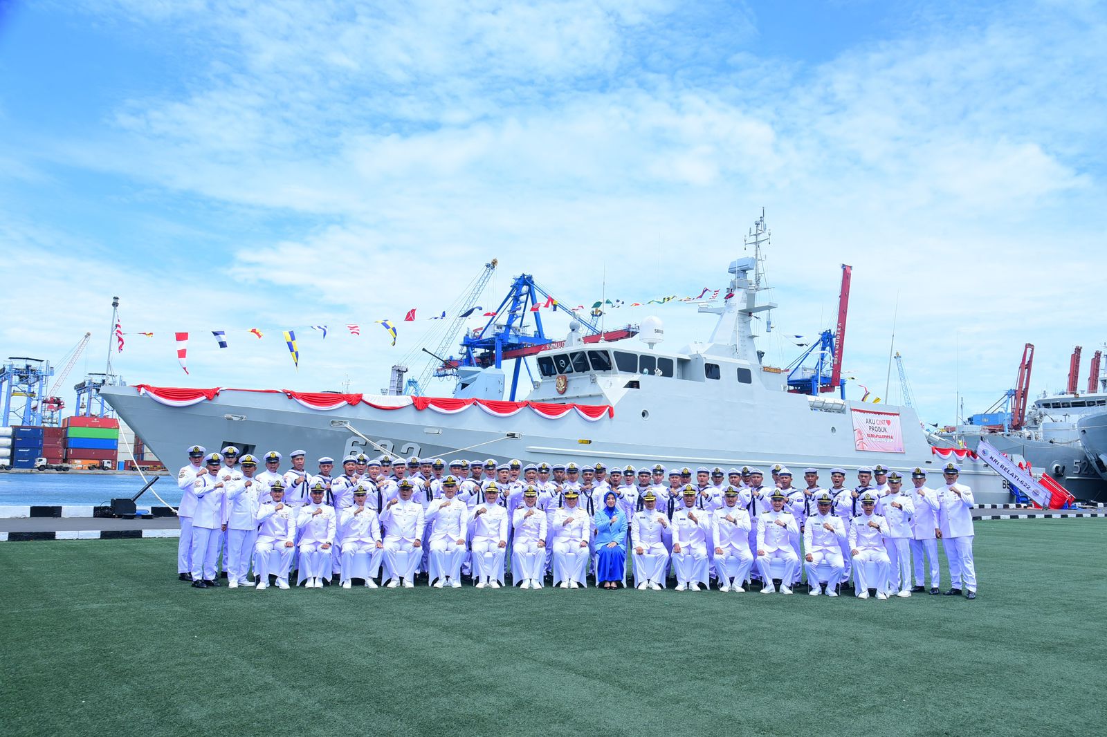 Panglima Komando Lintas Laut Militer (Pangkolinlamil) Laksda TNI Rudhi Aviantara IH., S.E., M.Si., M.Tr.(Han)., CHRMP., bersama Ketua Gabungan Jalasenastri Kolinlamil Ny. Hesti Rudhi Aviantara menghadiri acara delivery, peresmian KRI dan pengukuhan Komandan KRI Belati-622 yang digelar di Dermaga Mako Kolinlamil, Jakarta Utara, Jumat (24/10). Prosesi dipimpin langsung Kepala Staf Angkatan Laut (Kasal) Laksamana TNI Dr. Muhammad Ali didampingi Ketua Umum Jalasenastri Ny. Fera Muhammad Ali, serta dihadiri Wakil Menteri Pertahanan Republik Indonesia (Wamenhan RI) Marsekal Madya TNI (Purn) Donny Ermawan T., M.D.S., M.S.P., Para Pejabat Tinggi TNI AL dan pimpinan PT Tesco Indomaritim beserta jajaran.