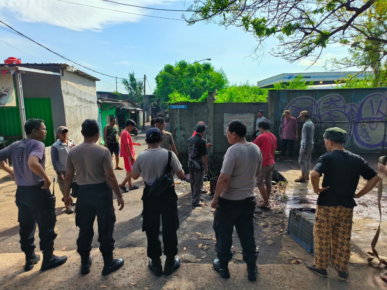 Personel Polsek Cakung bersama WKSI (Warga Kampung Sawah Indah) melaksanakan kegiatan kerja bakti *bulky waste* atau pembersihan sampah besar yang berpotensi menyumbat aliran air.
