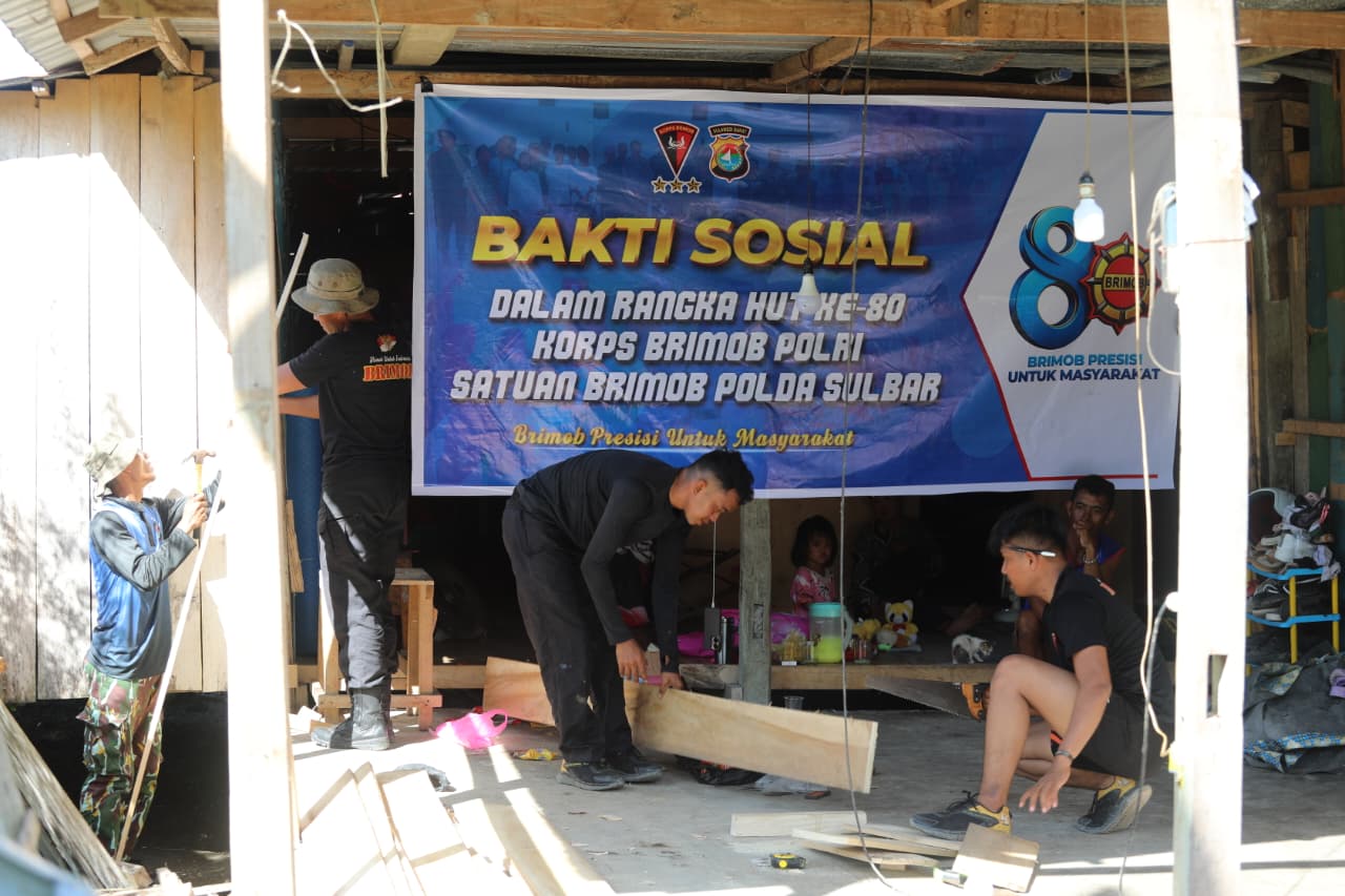 Kegiatan ini dilaksanakan pada 28 Oktober 2025 bertempat di Desa Rangas, Kecamatan Simboro dan Kepulauan, Kabupaten Mamuju. Personel Brimob Polda Sulbar bergotong-royong memperbaiki rumah warga yang kurang layak huni sebagai wujud kepedulian dan pengabdian Brimob kepada masyarakat.