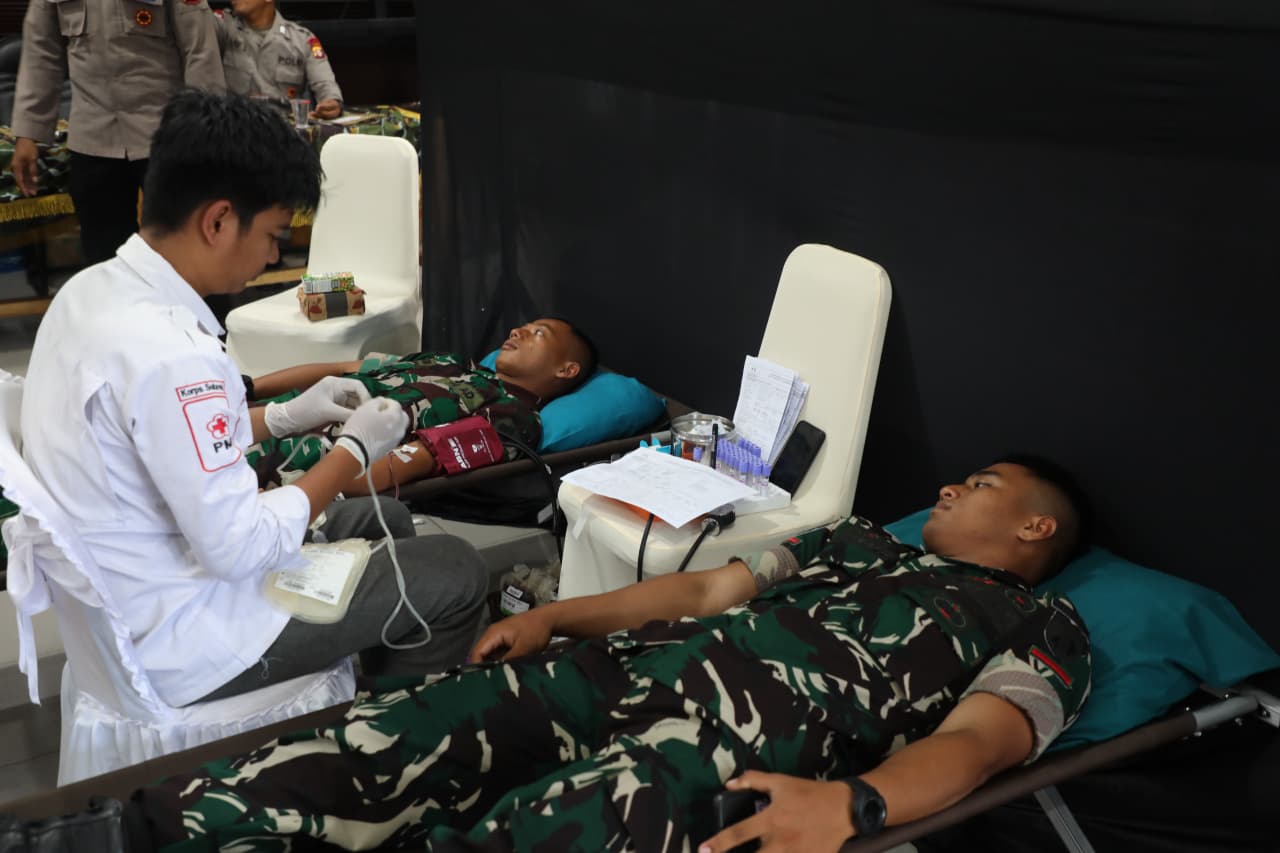 Suasana kebersamaan terasa semakin kuat dengan keikutsertaan personel TNI dari Batalyon Teritorial Pembangunan serta personel Ditsamapta Polda Kalteng yang turut mendonorkan darahnya bersama para personel Brimob.