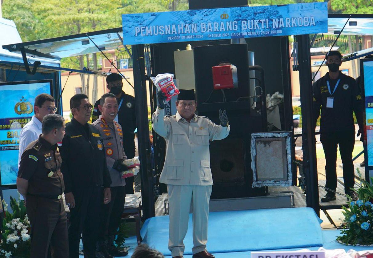 Jakarta, 29 Oktober 2025 — Presiden Republik Indonesia Prabowo Subianto didampingi Kapolri Jenderal Listyo Sigit Prabowo, memimpin langsung pemusnahan barang bukti narkotika seberat 214,84 ton hasil pengungkapan kasus sepanjang periode Oktober 2024 hingga Oktober 2025. Kegiatan monumental ini berlangsung di Lapangan Bhayangkara, Mabes Polri, Kebayoran Baru, Jakarta Selatan.