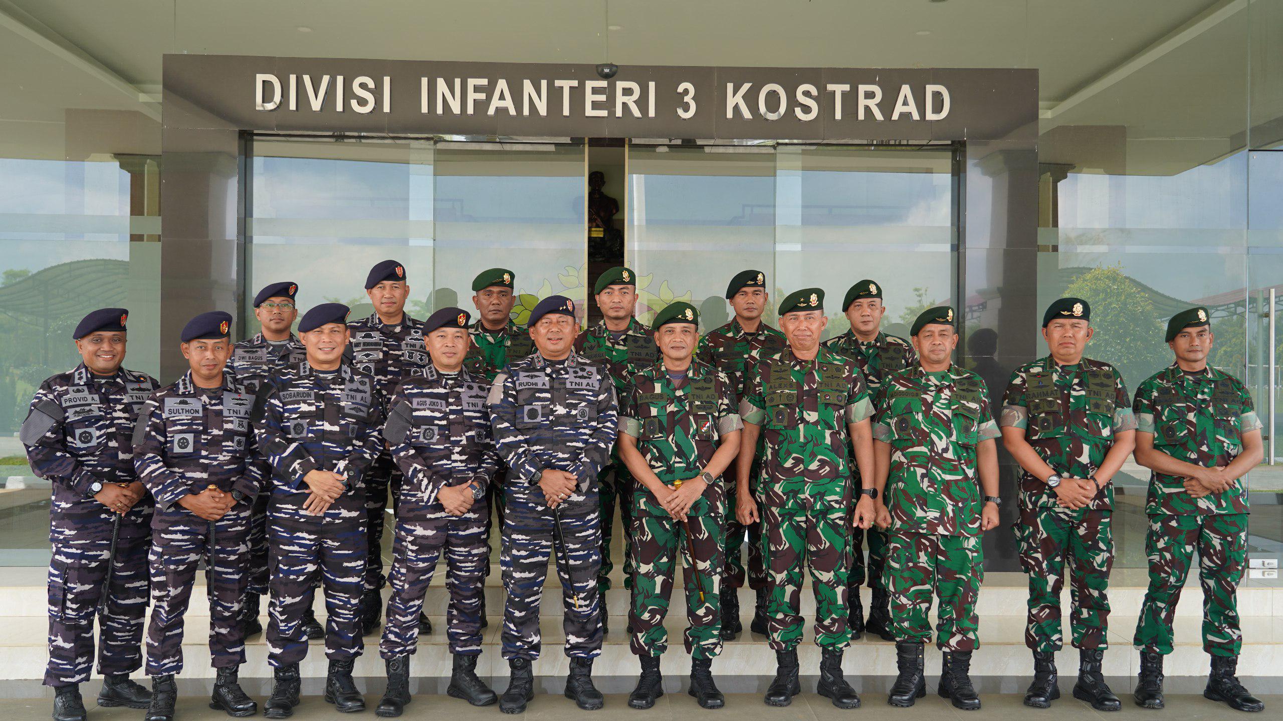 Kedatangan Pangkolinlamil beserta rombongan disambut hangat oleh Pangdivif 3 Kostrad Brigjen TNI Bagus Suryadi Tayo, M.Sc., bersama para pejabat utama Divif 3 Kostrad. Pertemuan tersebut berlangsung dalam suasana penuh keakraban dan semangat soliditas antarsesama prajurit TNI.