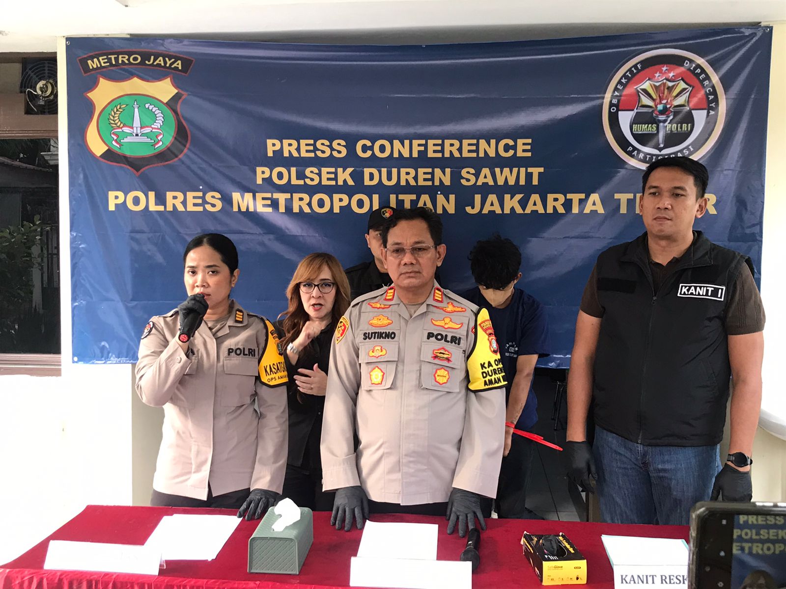 Penangkapan ketika Pak Kanitserse bersama-sama dengan tim opsional bersama Kapolsek melaksanakan kegiatan penyelidikan dengan viralnya di media sosial, bahwa pelaku terekam dalam CCTV, Kemudian kami profiling dan sebagainya sehingga kami maksimalkan proses Penyelidikan dan sampai akhirnya pada tanggal 27 November 2025, tim Reskrim Polsek Duren Sawit berhasil melakukan penangkapan. dan sampai saat ini kita lakukan pemeriksaan guna diajukan proses hukum lebih lanjut.
