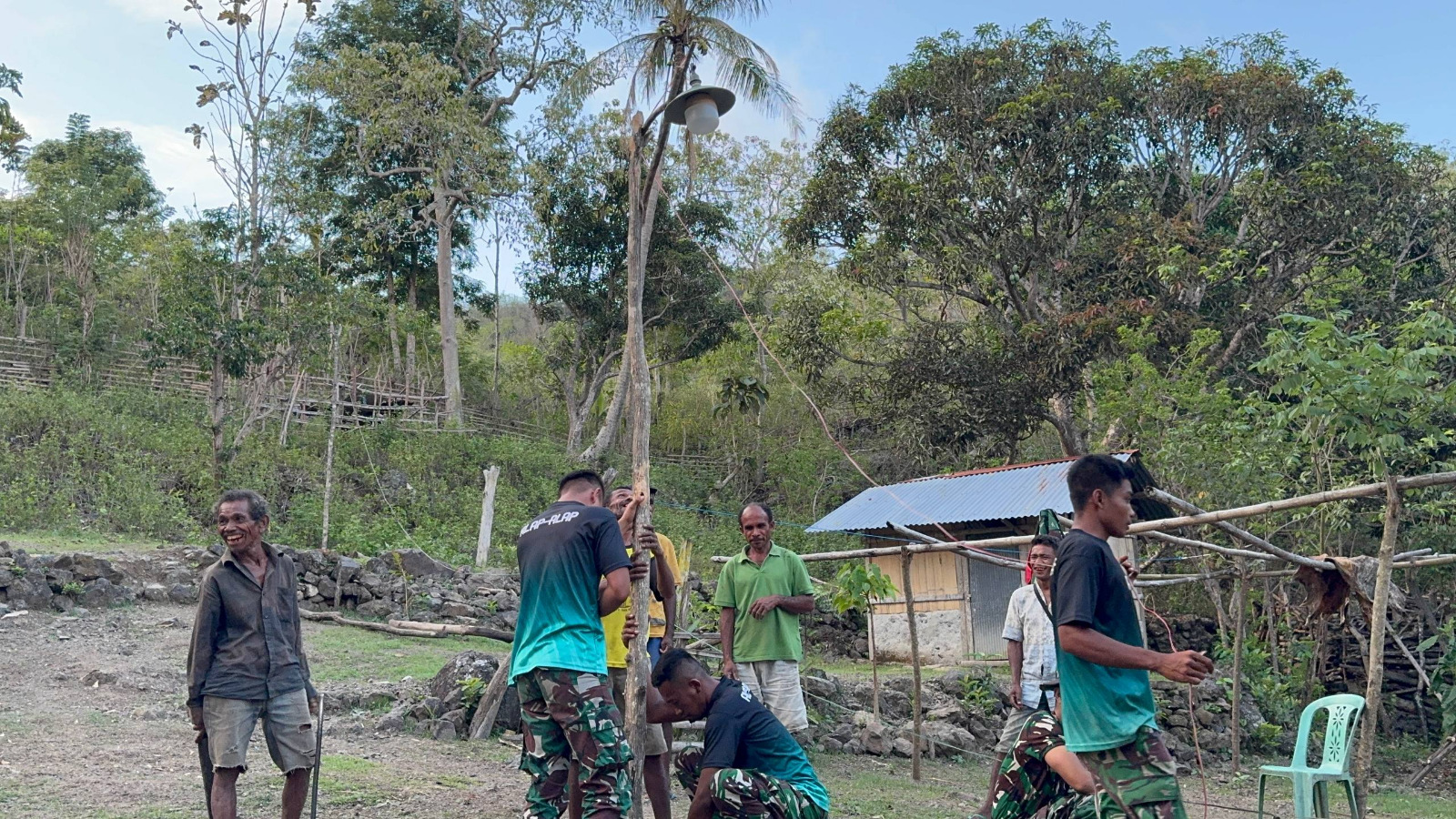 “Kami sangat berempati terhadap kesulitan warga yang ada. Maka kami memberikan jalan keluar dengan membantu membangun instalasi listrik berkoordinasi dengan PLN dan memasang lampu penerangan jalan,” ucap Danpos Nelu, Sertu Kevin.