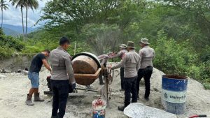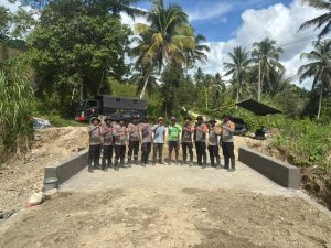 Tolitoli — Kompi 4 Batalyon A Pelopor melanjutkan pengerjaan pembangunan jembatan di Desa...