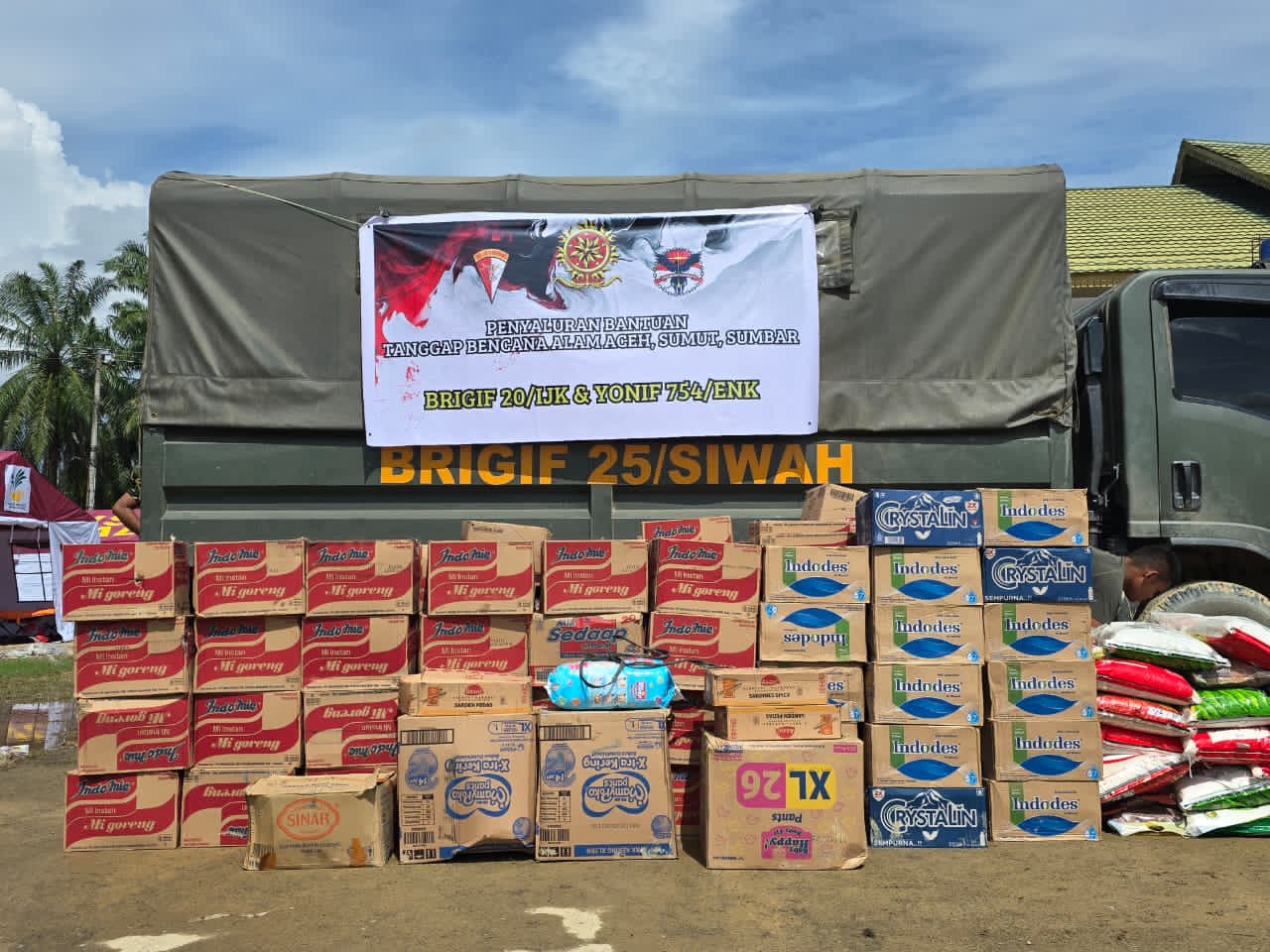 Aceh Tamiang – Brigif 20 Kostrad bersama Yonif 754 Kostrad distribusikan bantuan kemanusiaan bagi masyarakat terdampak bencana alam di Kabupaten Aceh Tamiang. Kegiatan ini merupakan bentuk respon cepat satuan jajaran Kostrad dalam mendukung percepatan penanganan pascabencana.