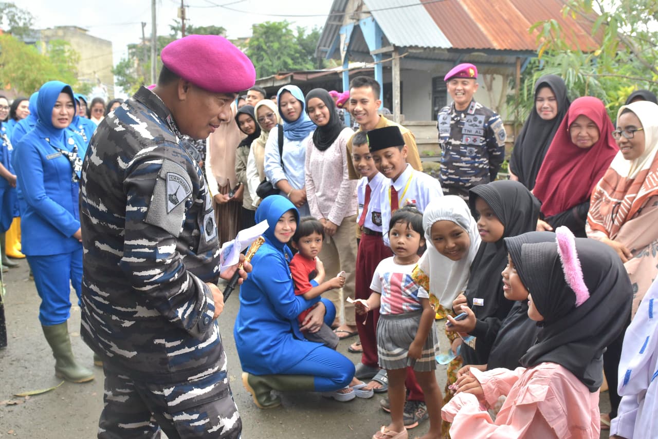 Sebelum tiba di sarang Petarung Naga Samudera Yonmarhanlan I, Pangkormar bersama Ketua Gabungan Jalasenastri Korps Marinir beserta rombongan meninjau langsung rumah prajurit yang terdampak banjir dan kebakaran di Komplek TNI AL Dewa Ruci, Kecamatan Medan Labuhan.