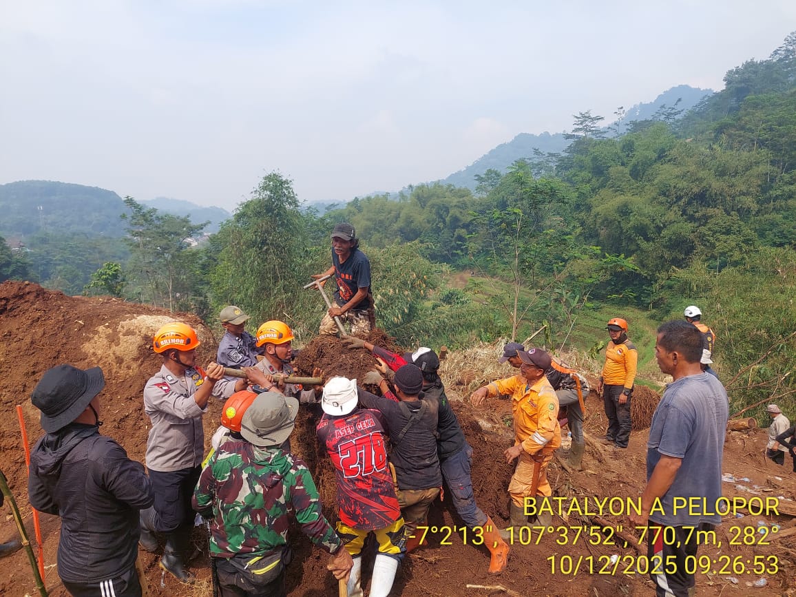Tanah longsor yang melanda Kampung Condong, Desa Margaluyu, Kecamatan Arjasari, memicu operasi pencarian besar – besaran oleh berbagai unsur SAR. Dalam operasi ini, Tim SAR Batalyon A Pelopor yang dipimpin oleh IPDA Dik Dik Sodikin menjadi salah satu kekuatan utama dalam proses evakuasi dan pencarian korban yang tertimbun material longsor.