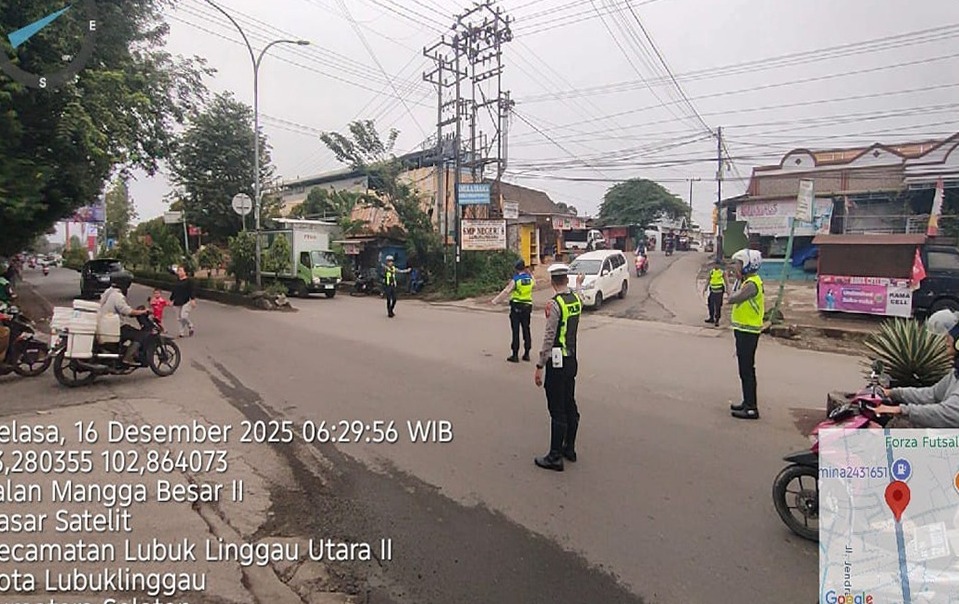 Satbrimob Polda Sumsel Dengan mengedepankan semangat melayani masyarakat, Satbrimob Polda Sumatera Selatan melaksanakan kegiatan pengaturan lalu lintas serta membantu penyebrangan anak-anak sekolah di seputaran Mako Satbrimob Polda Sumsel dan jajaran Batalyon Pelopor Satbrimob Polda Sumsel, Rabu (17/12/2025).